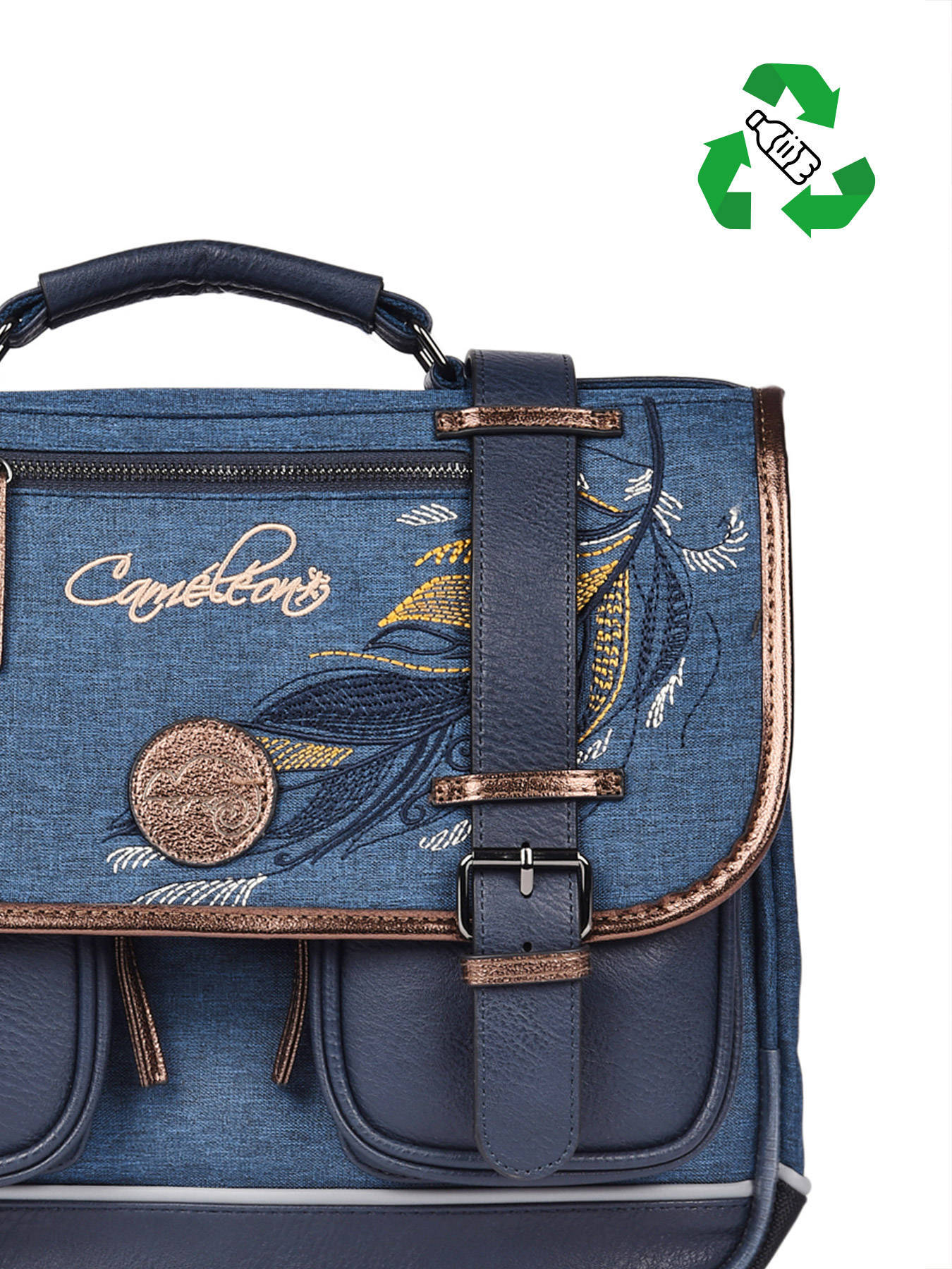 35 cm - 12 litres - 1.02 kg ~ Cartable cp 35cm de la ligne Vintage Fantasy signé Caméléon, parfait pour le CP et la maternelle ! On aime son look vintage avec ses finitions et sa belle poche zippée sur le rabat ! Il dispose de deux compartiments pour les cahiers formats 21x29,7 et 24x32cm ainsi qu'une petite poche zippée et un emplacement spécial règle. Il se ferme à l'aide d'un rabat et de deux fermoirs, et possède deux petites poches à fermeture éclair sur le devant, pratiques pour le goûter. Petit plus, le cartable dispose d'une étiquette nom. Très confortable, le dos et les bretelles sont rembourrés. Pour ne pas abîmer les affaires d'école, le fond du cartable est renforcé. Côté sécurité, des bandes réfléchissantes sont disposées autour du sac. Petit plus, la règle est offerte !